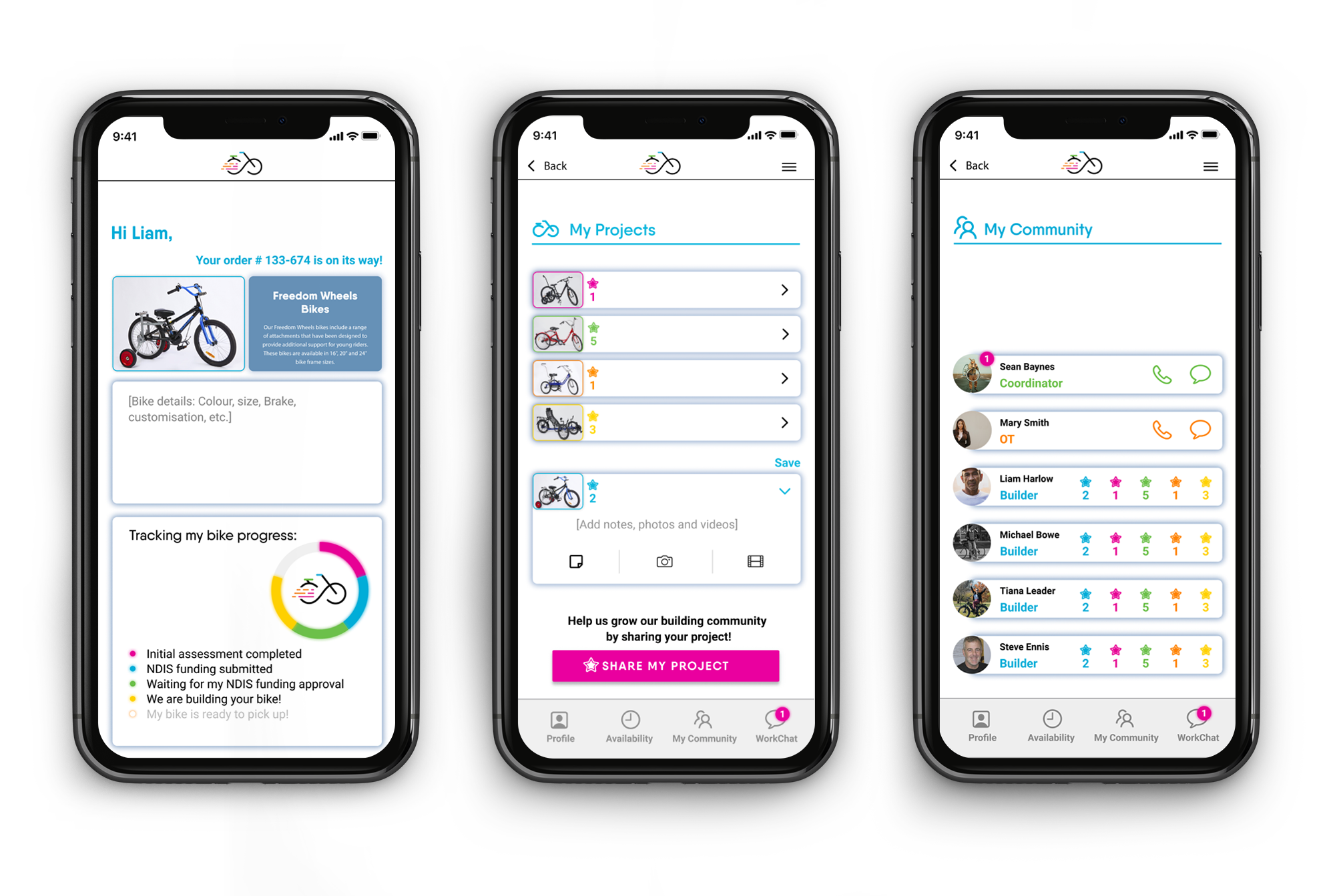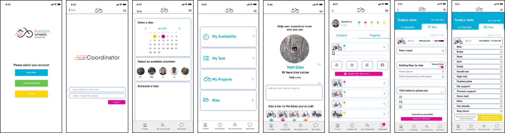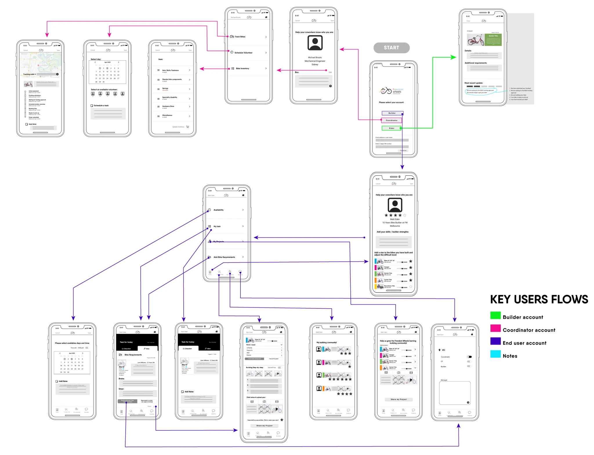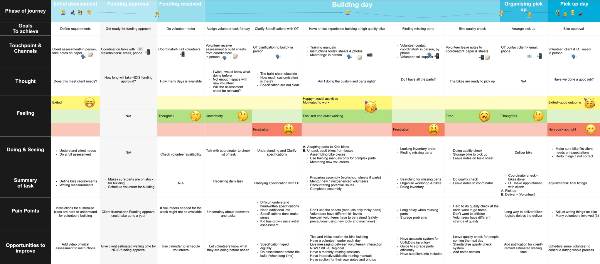 Freedom Wheels sought to retain and increase the number of volunteers in New South Wales and Victoria, and to boost bike deliveries and sales, all within the constraints of limited staff resources. There was an opportunity to create a community of expert bike builders by designing an instructional tool for bike assembly and a tracker for bike deliveries.