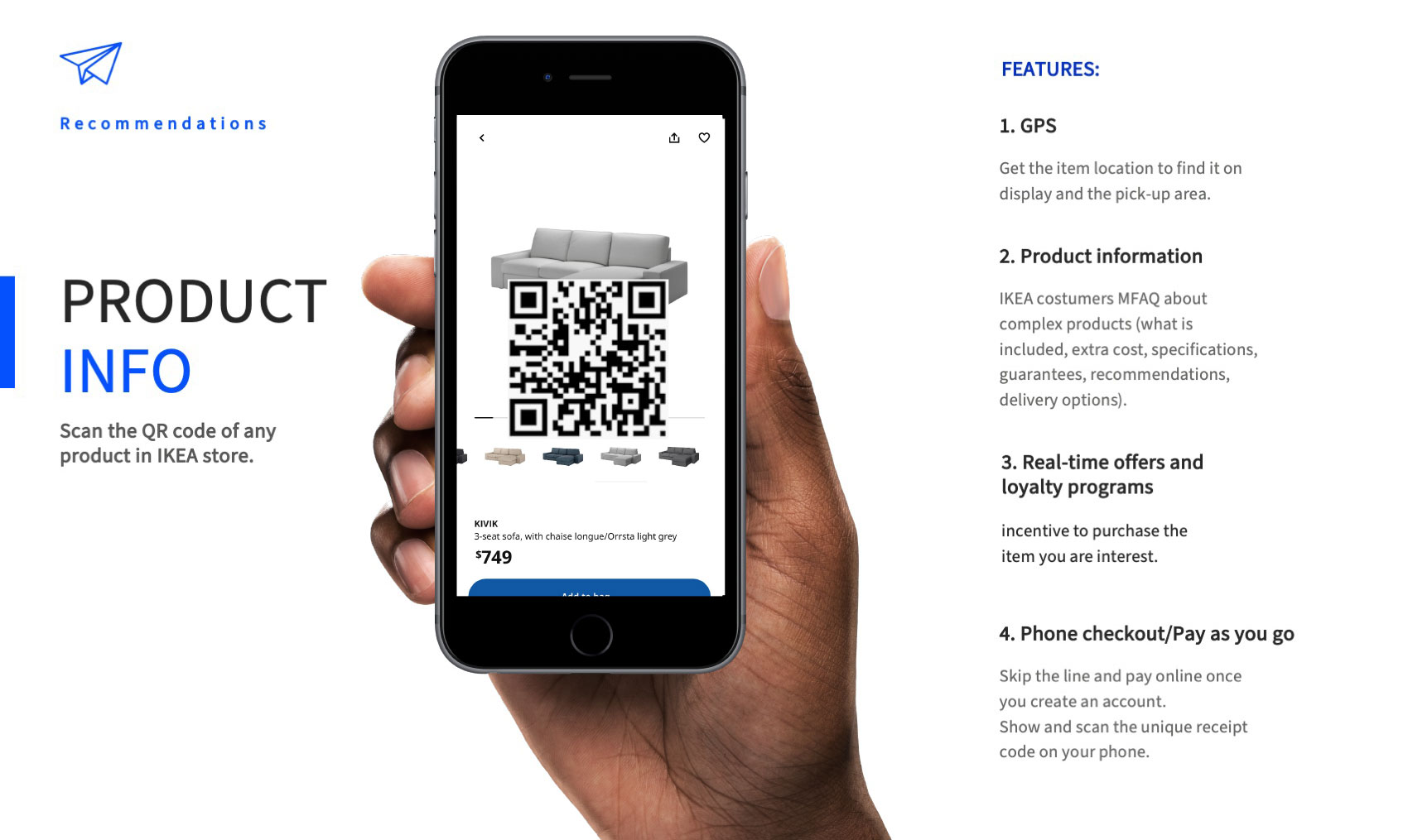 Based on research findings, I provided actionable recommendations to improve two key digital touchpoints (the in-store kiosk and IKEA’s app) focusing on enhancing product navigation, information access, offers and loyalty programs, and enabling easy checkout via phone.