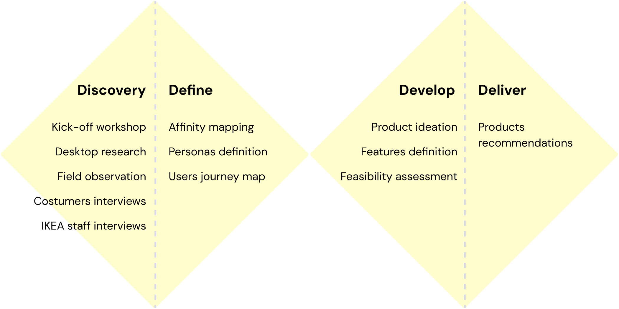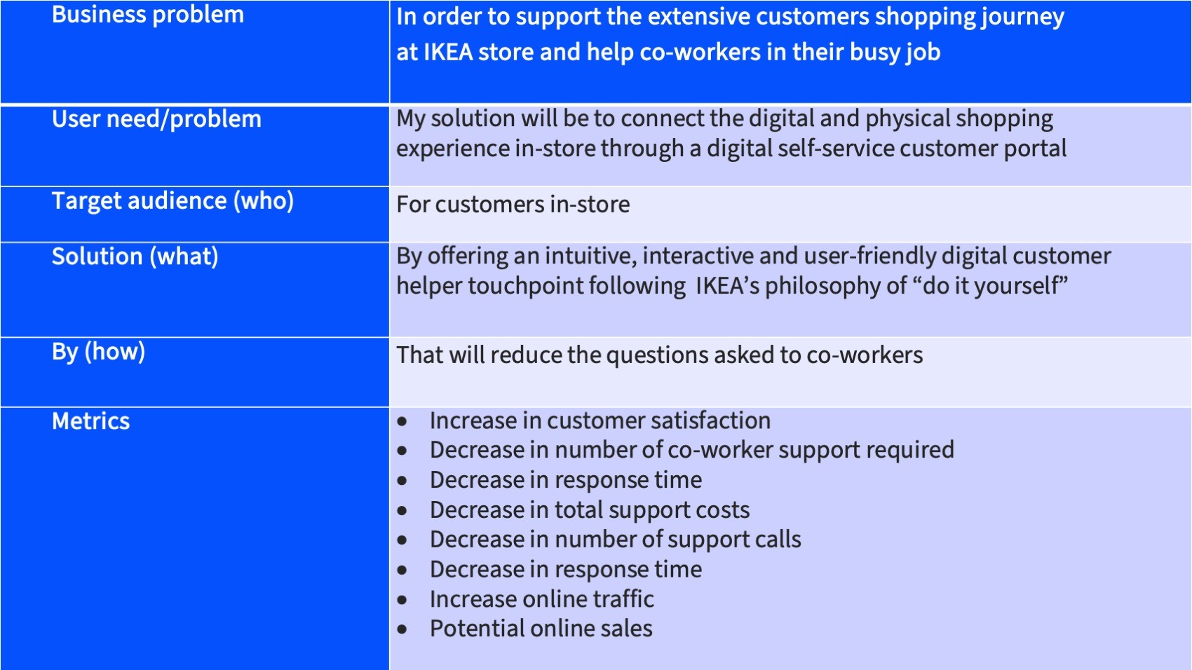 This project involved foundational user research to define key requirements for enhancing IKEA’s digital touchpoints. The goal was to better support changing customer behaviours post-COVID and enable a smoother shopping journey without relying heavily on IKEA staff.