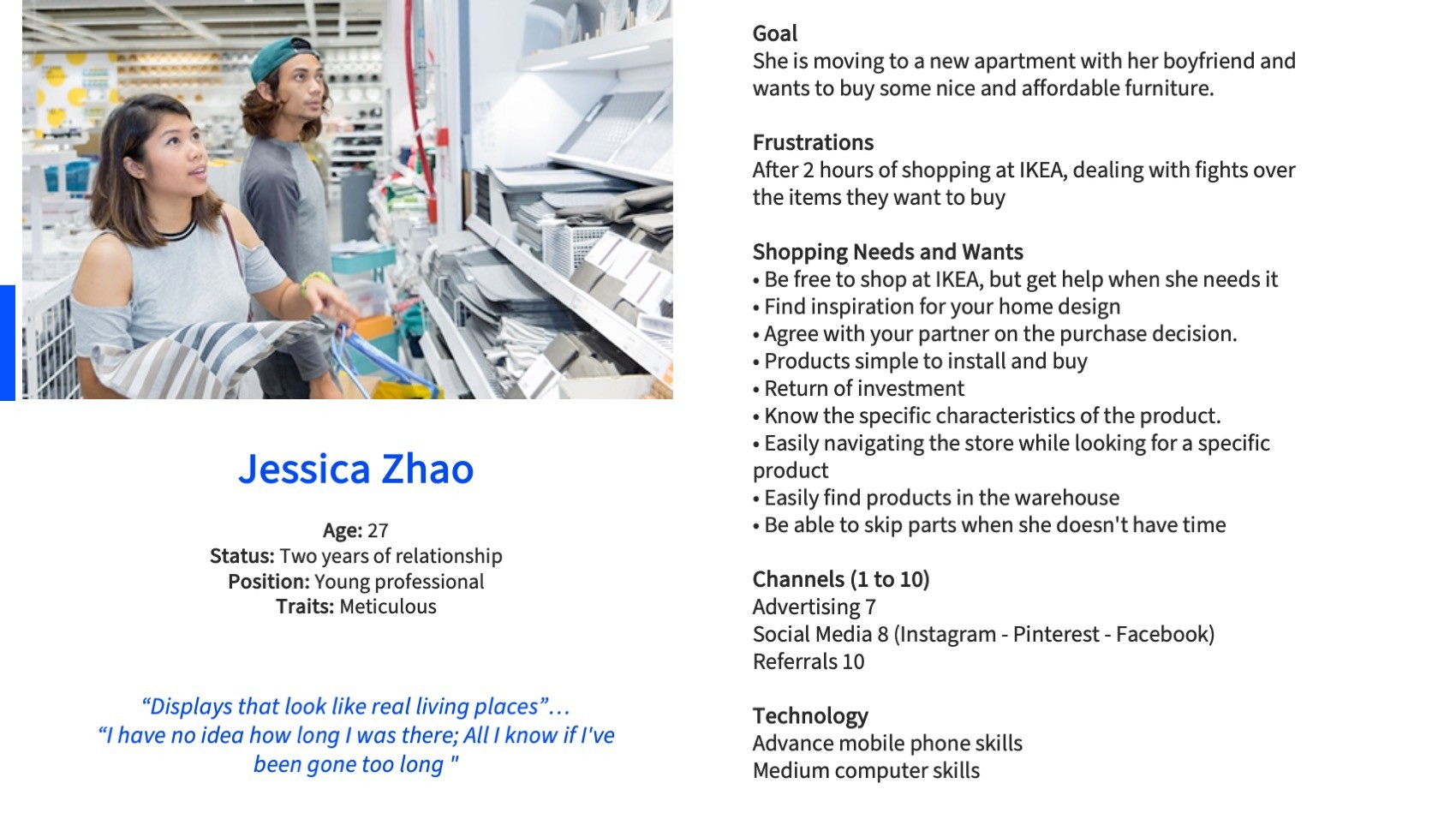 Developed a persona based on research findings to represent typical IKEA customer and their needs.