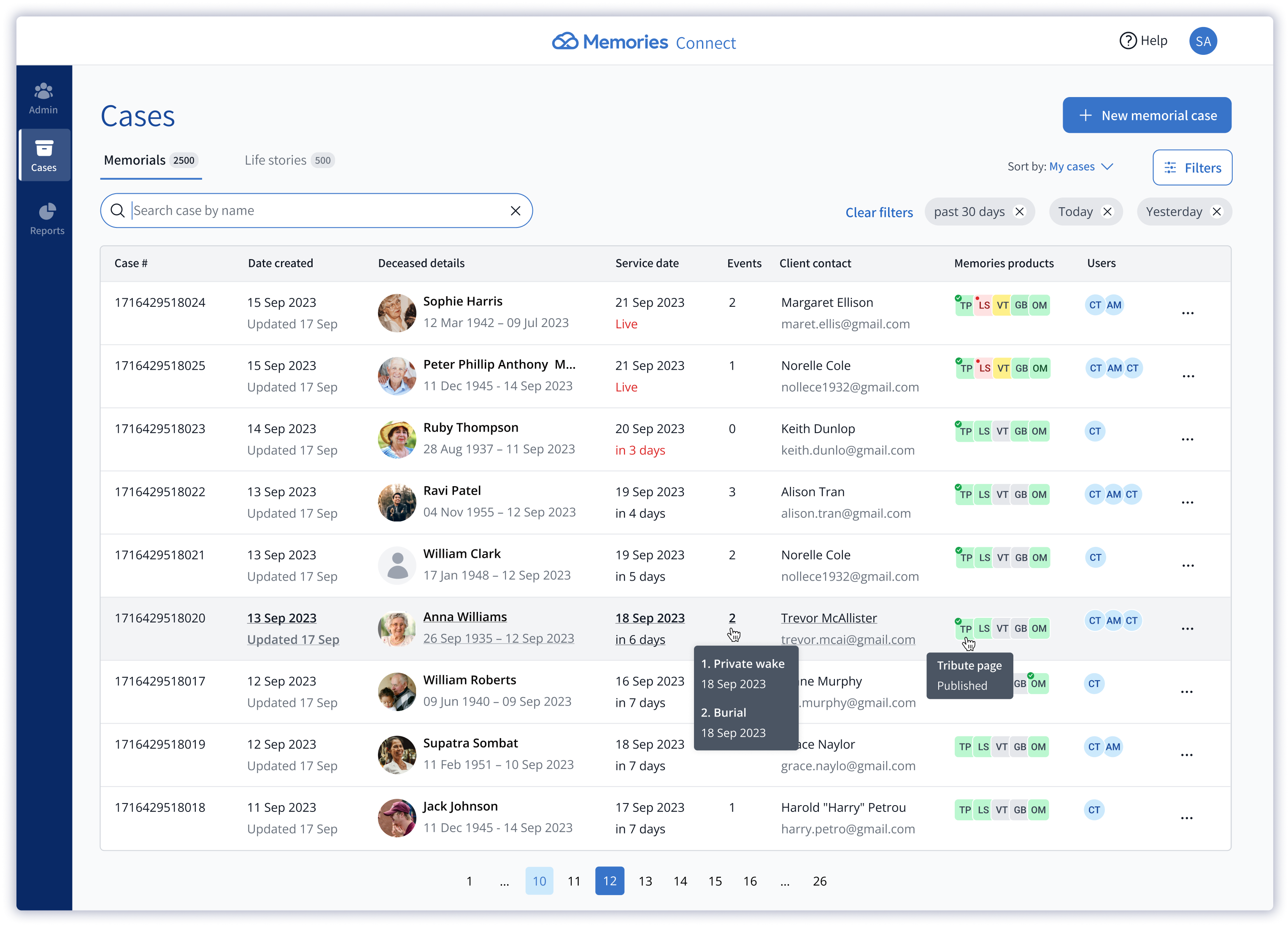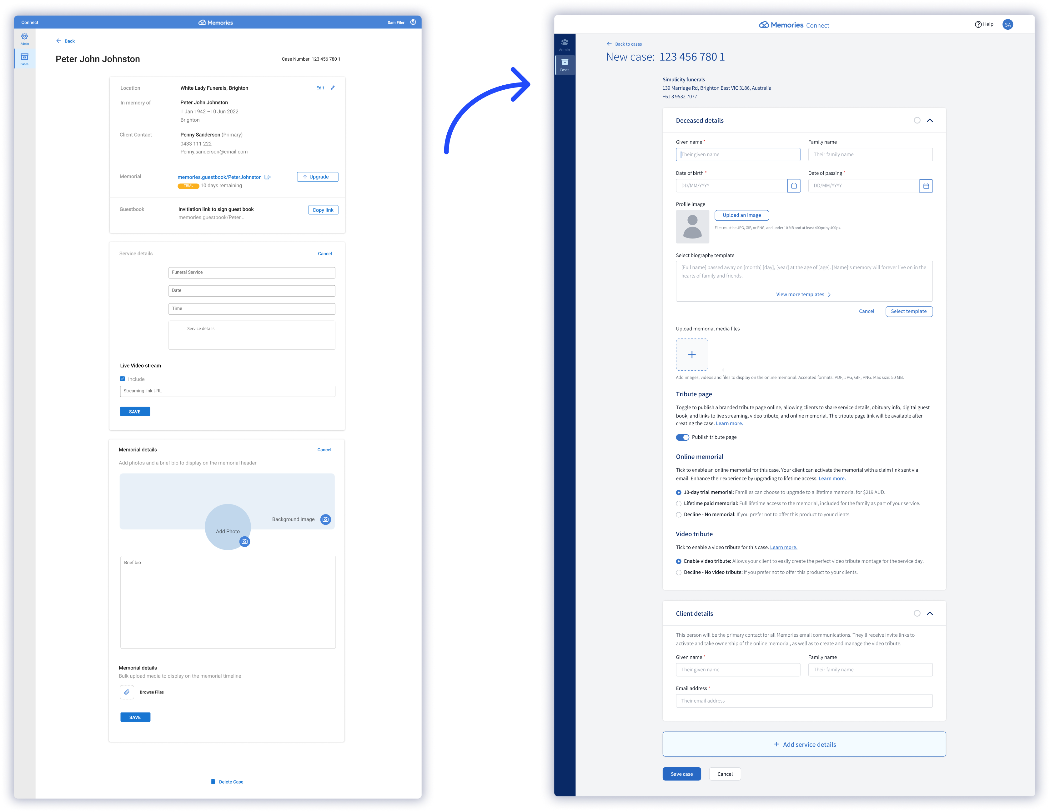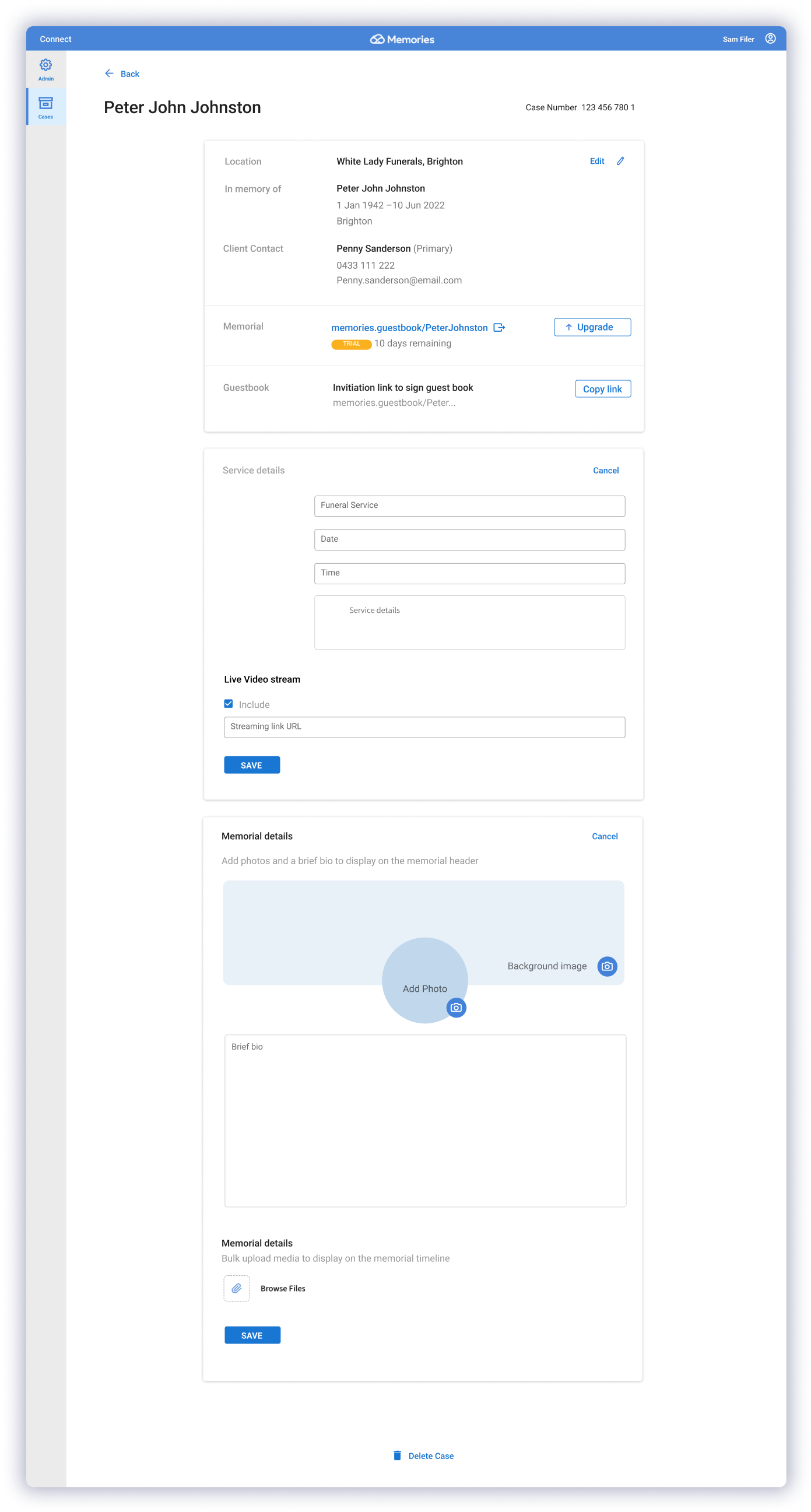 To support this, we redesigned the Memories Connect CRM to help funeral directors easily activate and manage these offerings.