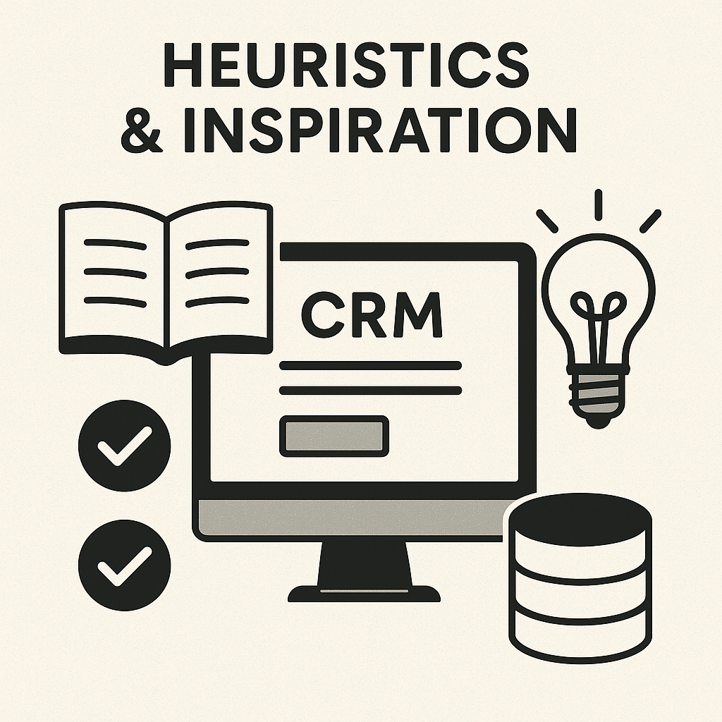 To improve CRM usability, I reviewed the platform against heuristics and design best practices, drawing inspiration from government forms and modern CRM dashboards.